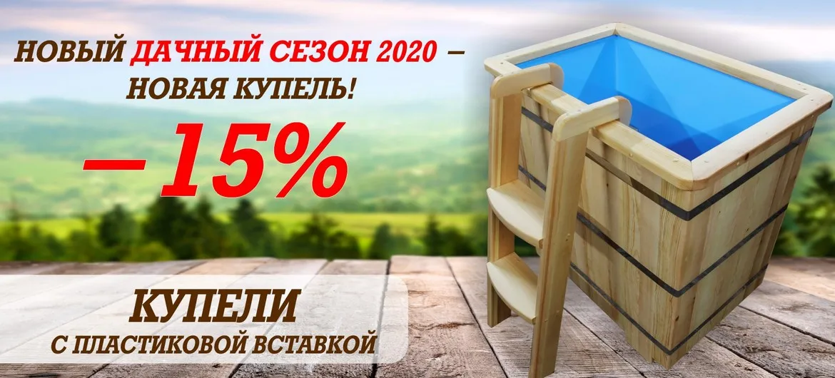 Только сейчас вы можете приобрести любую купель с пластиковой вставкой со скидкой 15%!